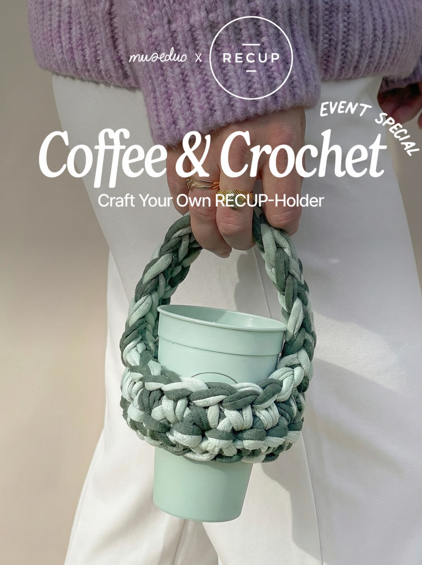 Gemeinsam mit RECUP starten wir kreativ & nachhaltig ins neue Jahr. Bei unserem Event häkelst du deinen eigenen Cup-Holder in deinen Lieblingsfarben und ganz nach deinem Stil – perfekt für deinen RECUP. Egal, ob du noch nie gehäkelt hast oder schon Pro bist: Das Event ist für alle Levels geeignet. 💜
