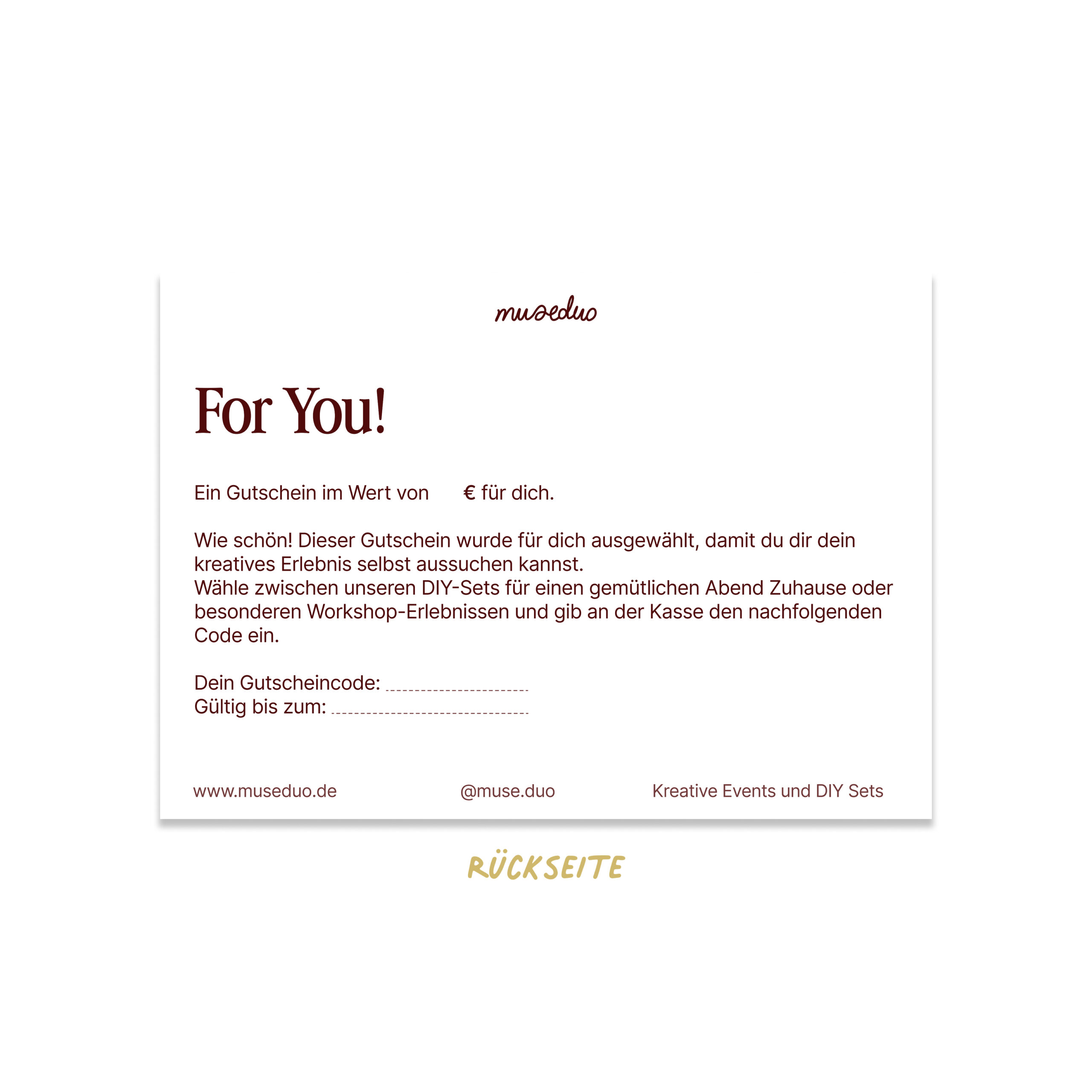 Unsere Gutscheine sind einlösbar für unsere Events und DIY-Sets.