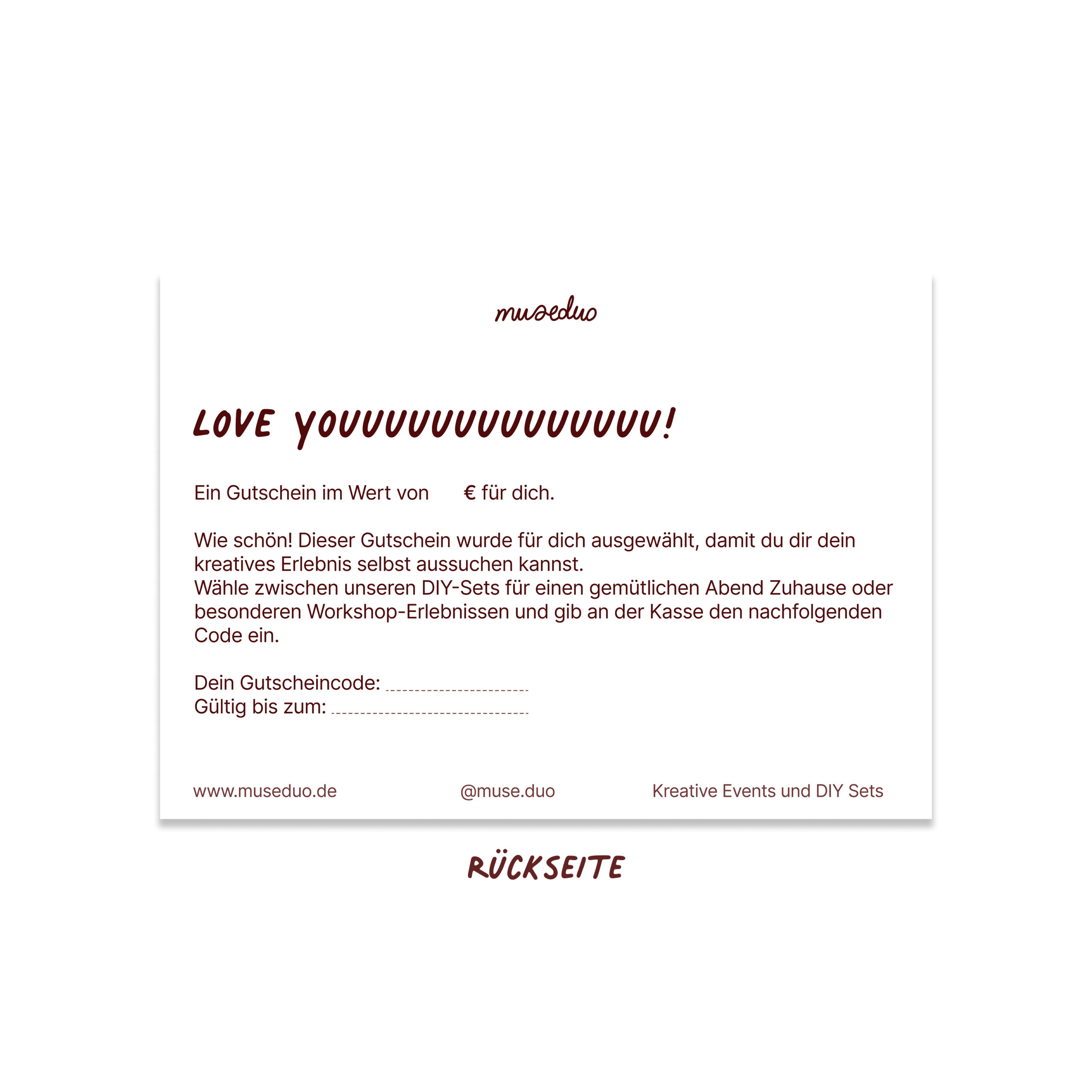 Unsere Gutscheine sind einlösbar für unsere Events und DIY-Sets.