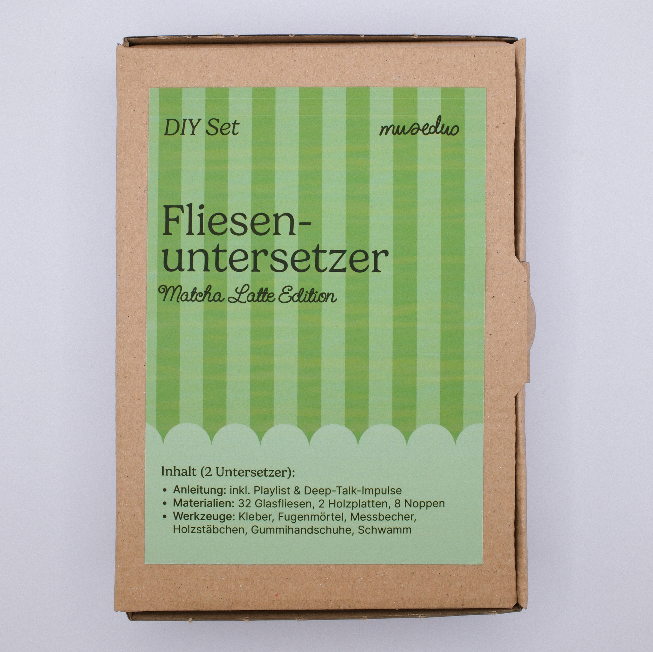 Pro Set gestaltet ihr zwei Glasfliesen-Untersetzer inklusive digitaler Anleitung, passender Musik-Playlist und Deep-Talk-Fragen für zwischendurch.