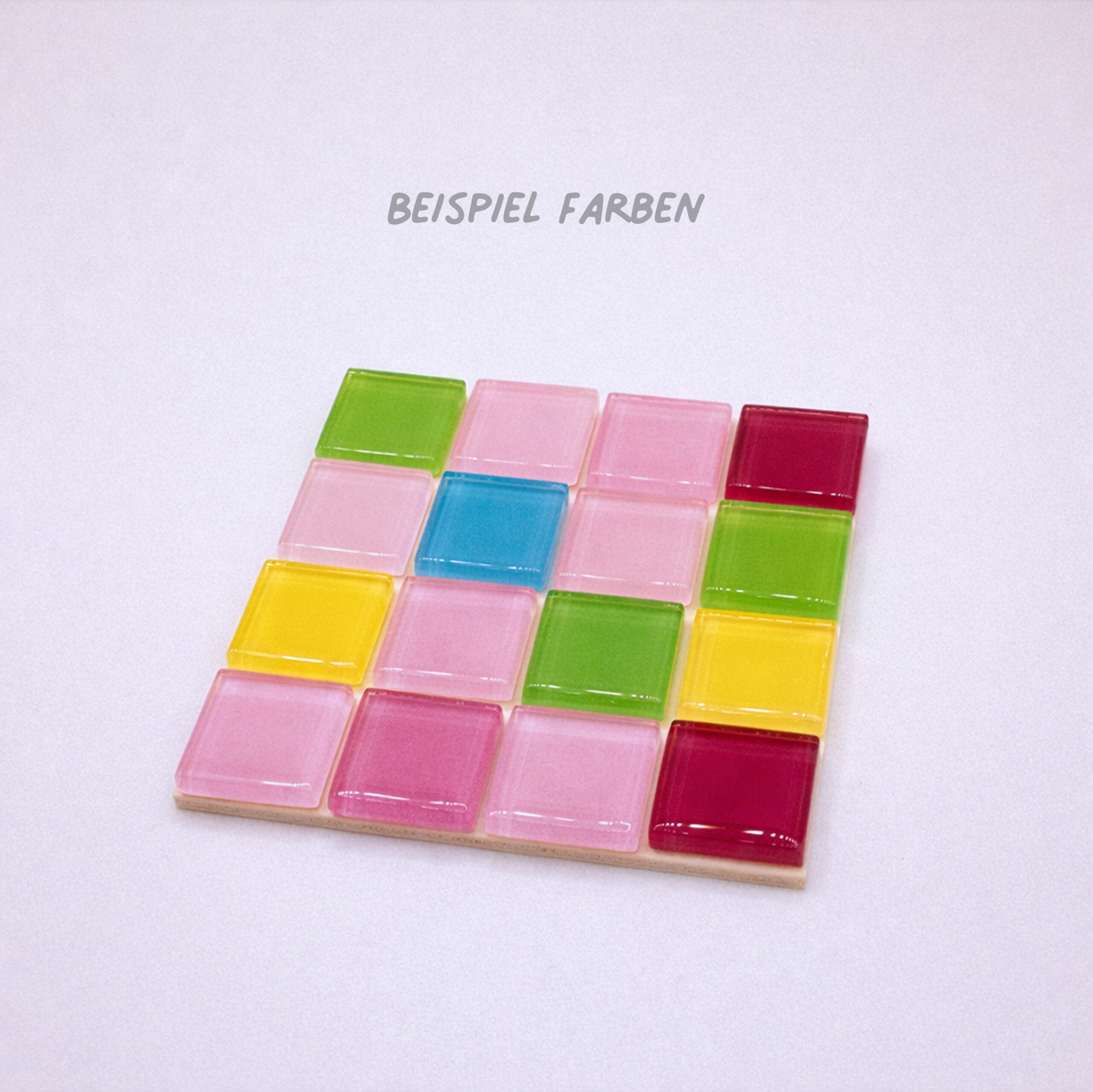 - 32x Glasfliesen in unterschiedlichen bunten Farben (ausreichend für 2 Untersetzer)