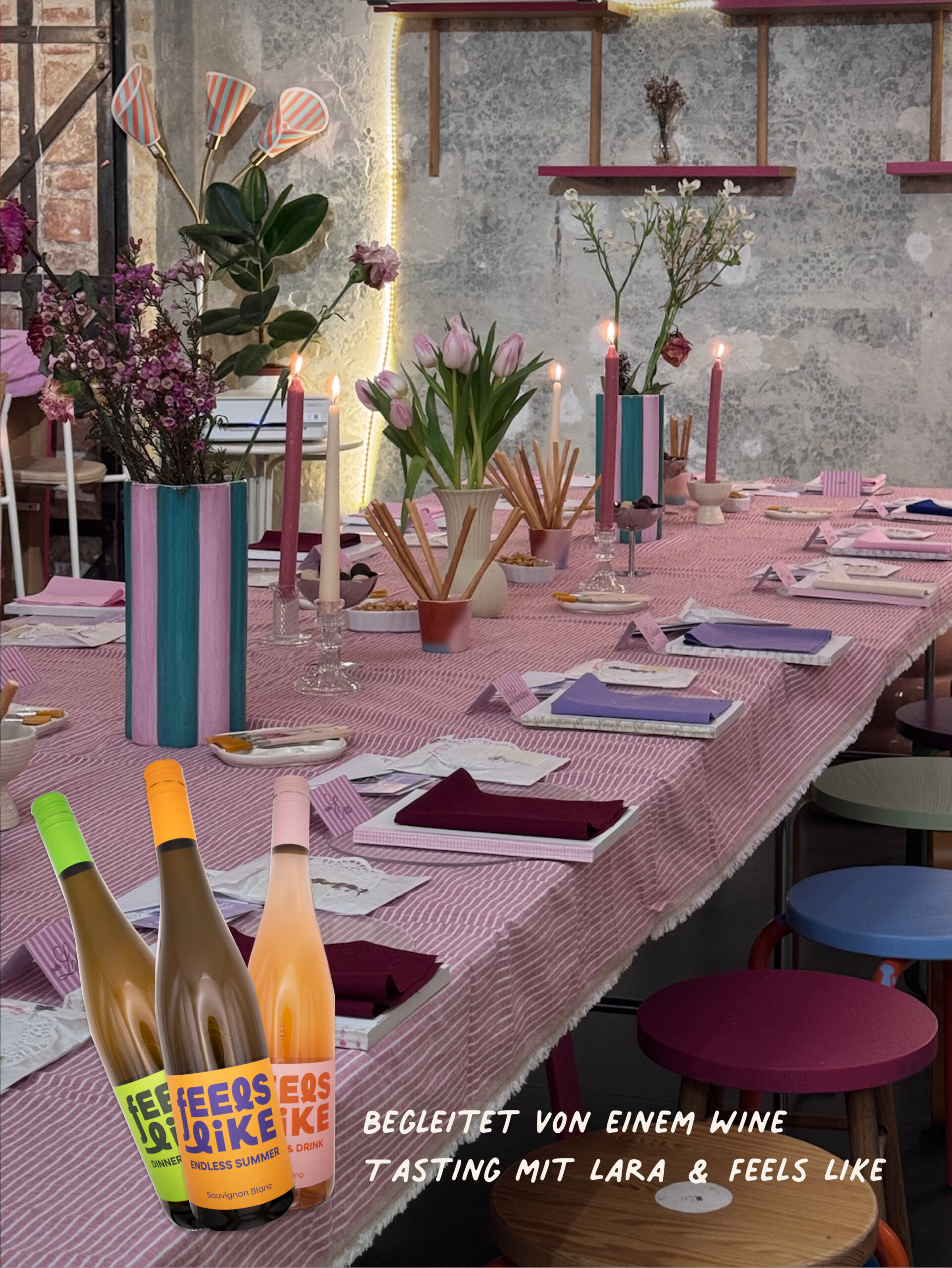 Begleitet wird der Abend von einem Wine Tasting mit Lara und ihrer Marke Feels Like 🍷