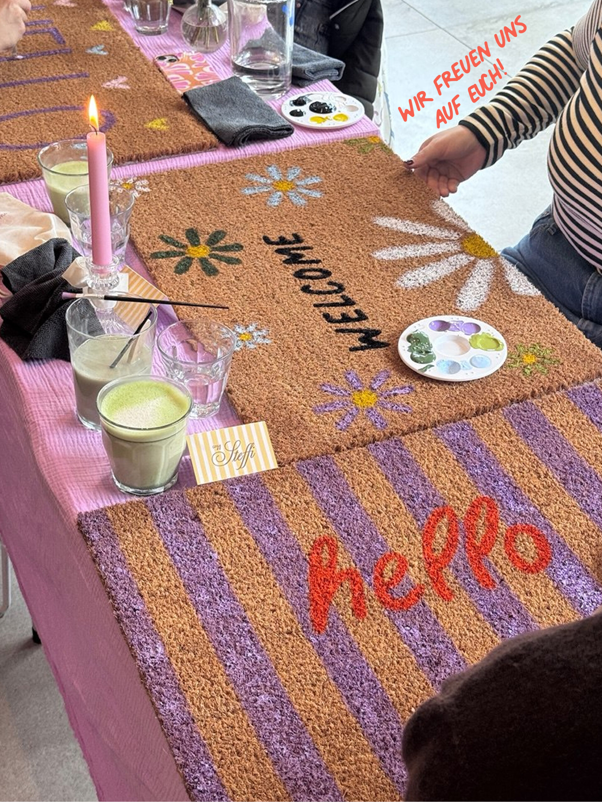 Dieses Mal wird’s kreativ an der Haustür: wir bemalen gemeinsam bunte Fußmatten!