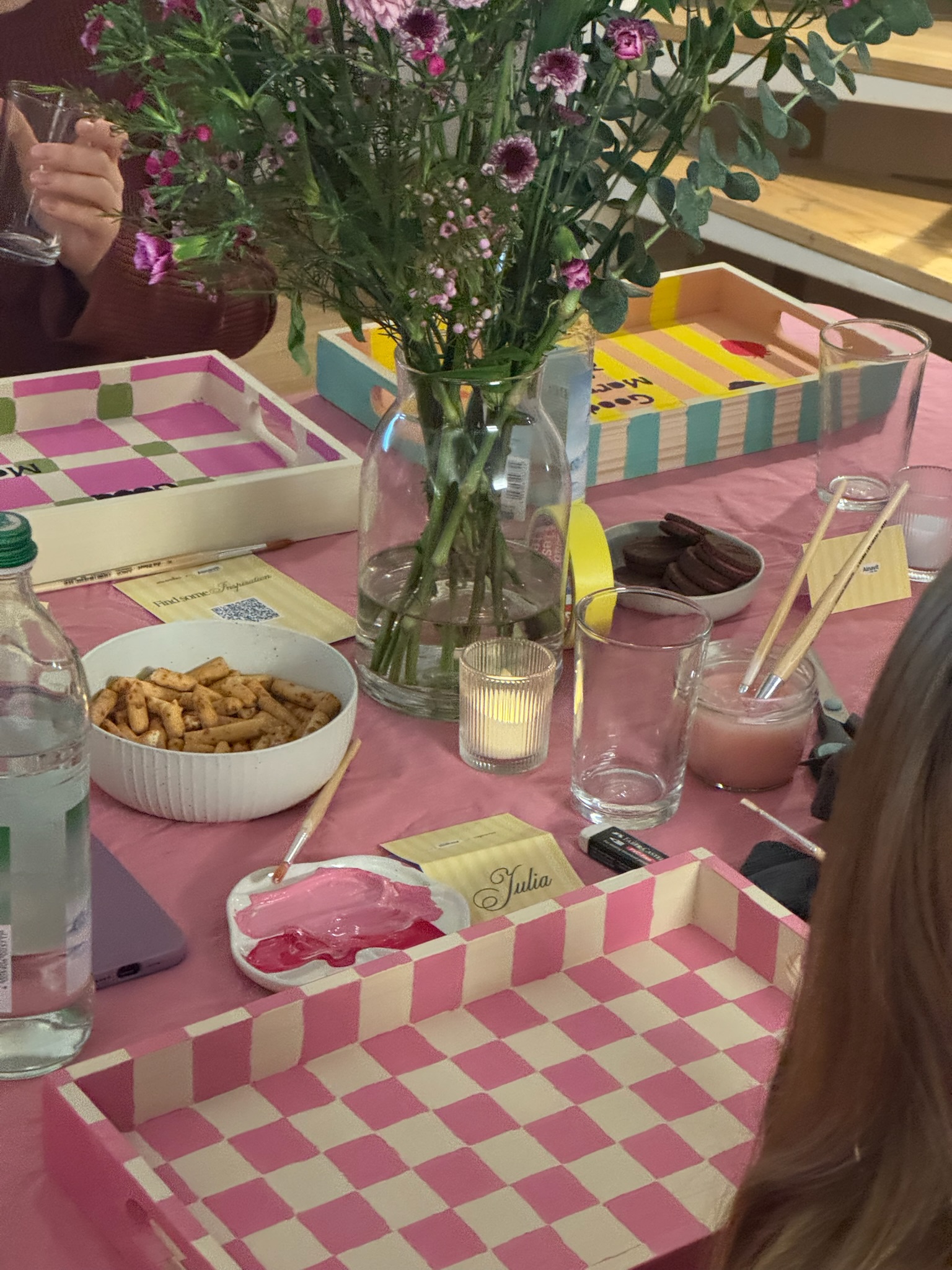 Gemeinsam gestaltet jede ihr eigenes Frühstückstablett aus Holz. Mit Schablonen oder frei Hand gestaltet ihr euer Design: ganz nach eurem Stil, ob mit Spruch, Motiv oder schlichtem Muster. Perfekt für das Frühstück zu Hause oder als persönliches Geschenk!
