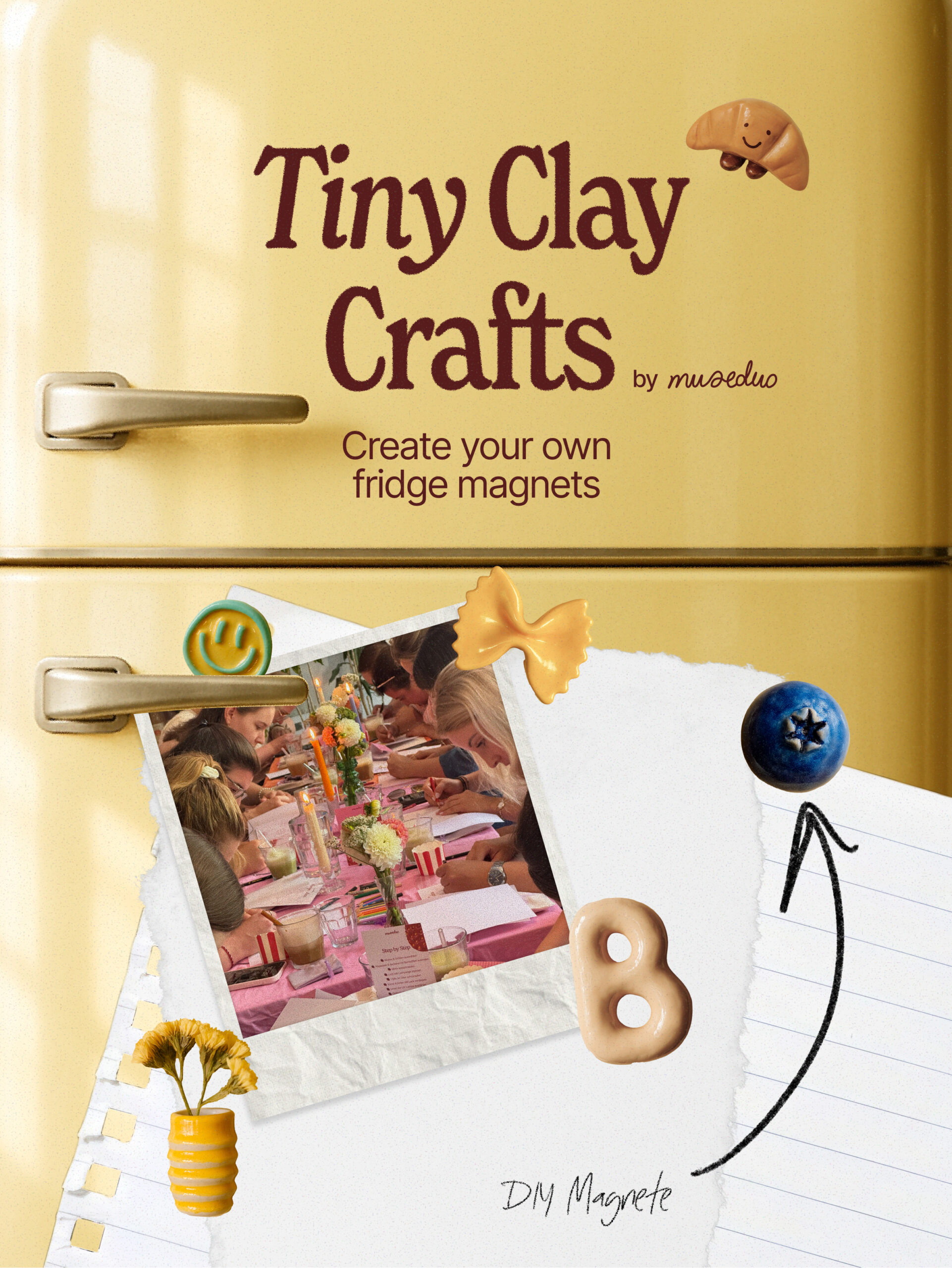 Formt und bemalt eure eigenen Mini-Magnete aus lufttrocknendem Ton. Ob Croissant, Blaubeere, Smiley oder Buchstaben: eurer Kreativität sind keine Grenzen gesetzt.